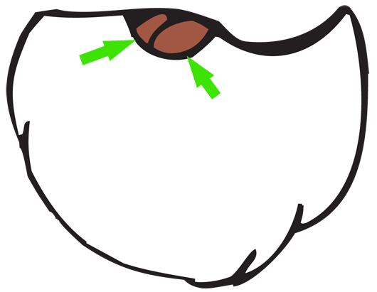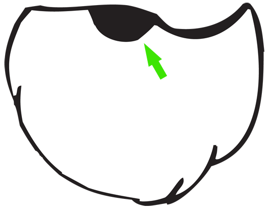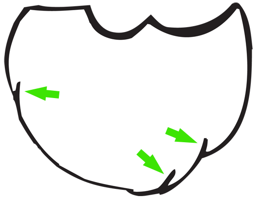 Проведите линию, чтобы завершить рисование овала лица, как показано зелёными стрелками слева.