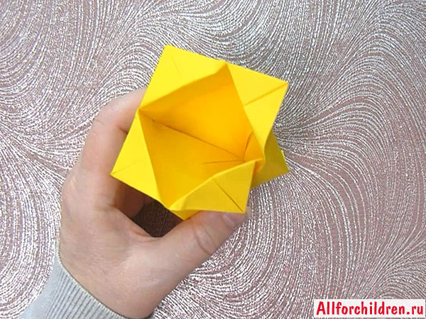 Шаг 6. Боковые уголки квадрата загните к центральной линии вот таким образом.