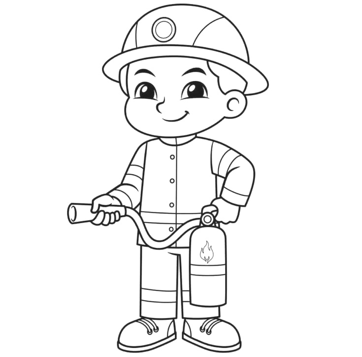 ГлавнаяЮный художникРаскраскиПрофессииПожарные → Пожарный с огнетушителем