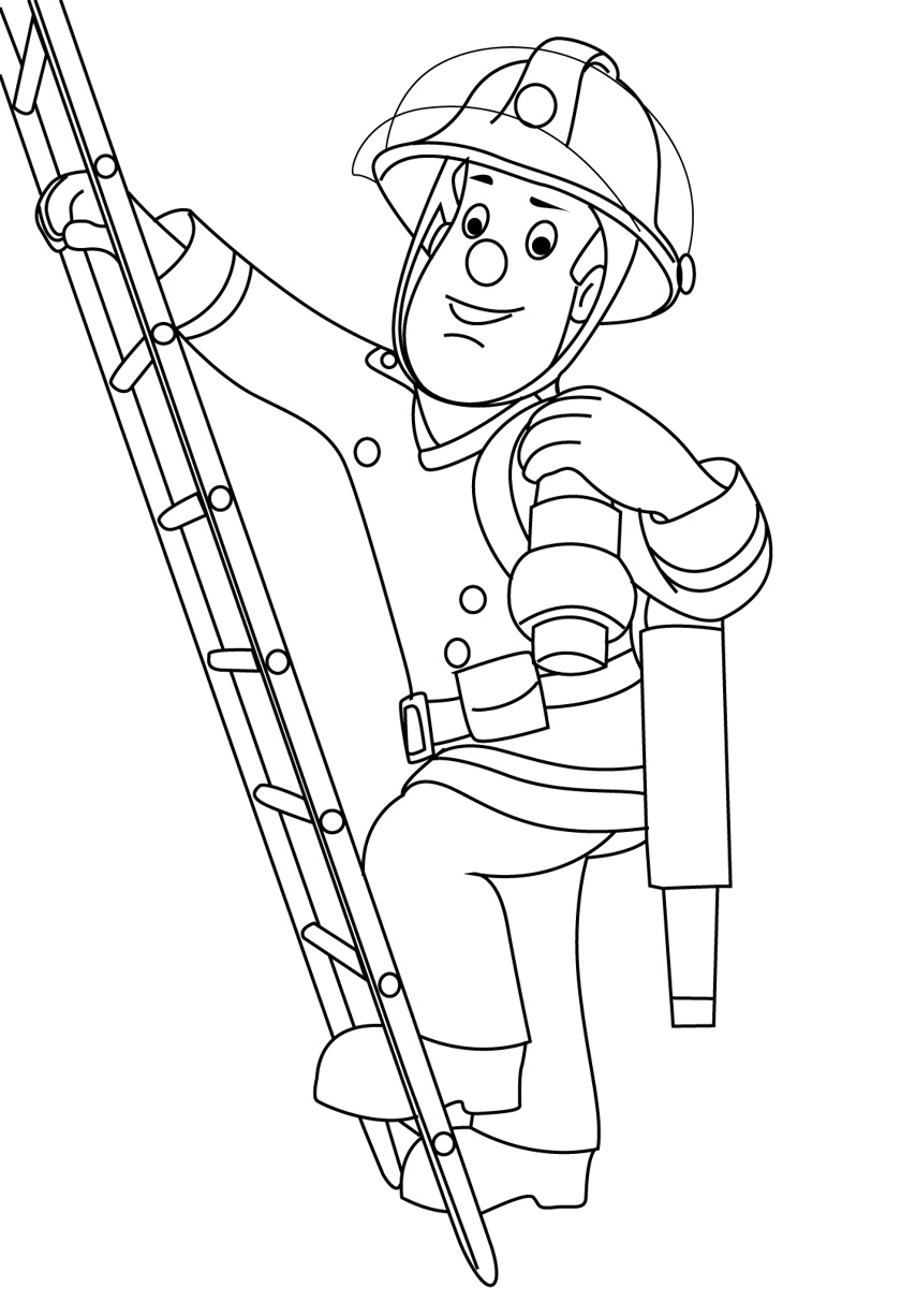ГлавнаяЮный художникРаскраскиПрофессииПожарные → Пожарный взбирается по лестнице с пожарным руковом