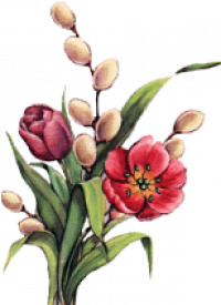 Два тюльпана Букет из тюльпанов и вербы Три красных тюльпана с белым дном Три розовых тюльпанчика