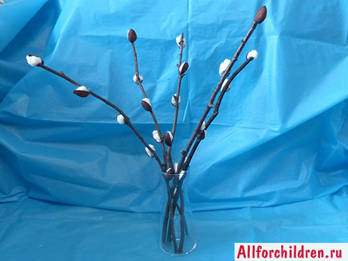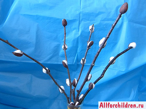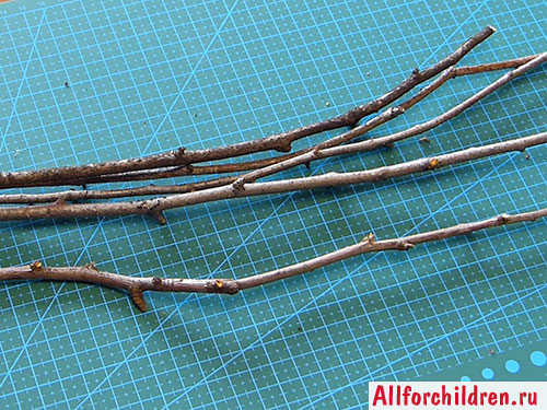 1. У вербы веточки прямые, поэтому нужно подобрать по возможности ровные ветки небольшой толщины. В средней полосе лучше всего для этого подойдут ветки березы или липы. Но раз уж мы с вами решили не причинять вреда живой природе, то, пожалуйста, не обижайте и эти деревья. Ведь на земле под ними всегда можно найти опавшие ветки, а весной их особенно много.