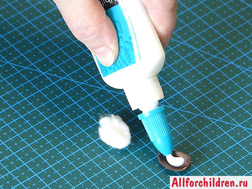 4. Приготовьте вату, пинцет и клей ПВА. Из ваты скатайте пальцами комочки, похожие на соцветия вербы - продолговатые, овальные, похожие на маленькие яички. Нанесите на внутренную часть скорлупки клей и закрепите в ней комочек ваты. Это почка вербы.