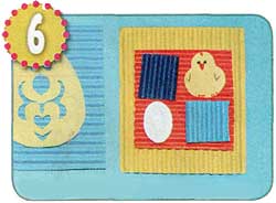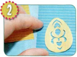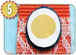 На квадрат картона наклей кусочек кружева, а сверху - две овальные детали с «желтком» посередине.
