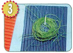 Из ниток или сизаля сделай гнездышко и тоже приклей на картон.