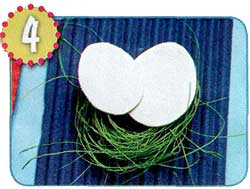 Из плотной белой бумаги вырежи два яйца и наклей их поверх «гнездышка».