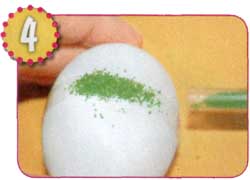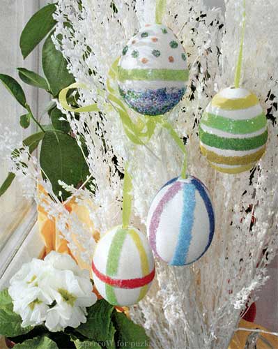 Подготовь выдутые яйца, цветной песок, двусторонний скотч или клей.
