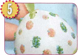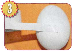 Чтобы узор получился полосатым, обклей яйцо полосками двустороннего скотча. Приклеивай их по одной.