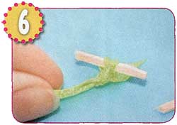 Для подвески к кусочку спички привяжи ленточку, протяни спичку сквозь отверстие и потяни на себя.