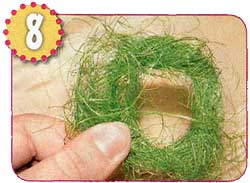 Пустые яйца можно подвешивать, ставить на подставочки или на «травку» из смотанного кольцом сизаля.