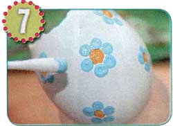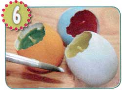 Когда воск застынет, обрежь лишнюю нить с обеих концов. Раскрась скорлупу гуашью или акрилом.