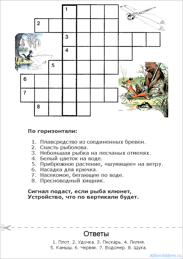 Что можно встретить почти на любом пресноводном водоеме? Давай узнаем, разгадав этот кроссворд. Разгадав все слова по горизонтали, посмотри, что получилось в выделенной линии по вертикали.