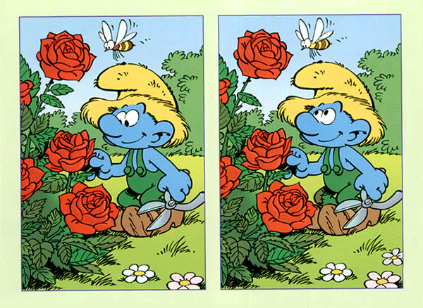 Эти картинки со Смурфиком имеют 5 отличий. Попробуй их найти.