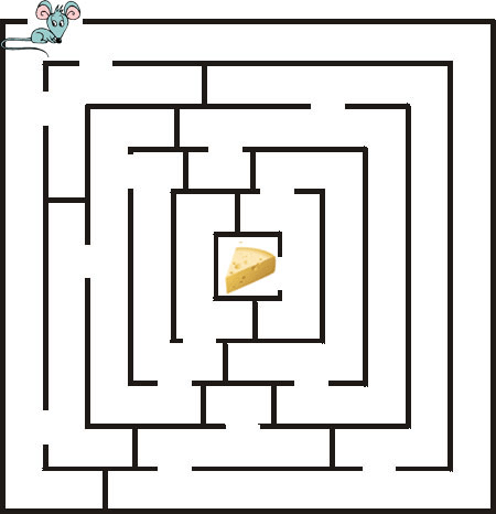 Помоги мышонку достать сыр, который находится в центре лабиринта.