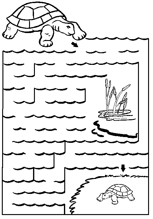 Черепахе нужно переплыть через озеро-лабиринт. Покажи черепахе путь!