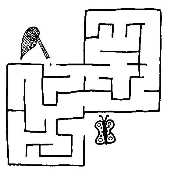 Поймай бабочку сачком. Для этого нужно пройти лабиринт от сачка до бабочки.
