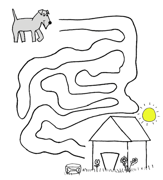 Собачке нужно добраться до своей конуры. Помоги ей.