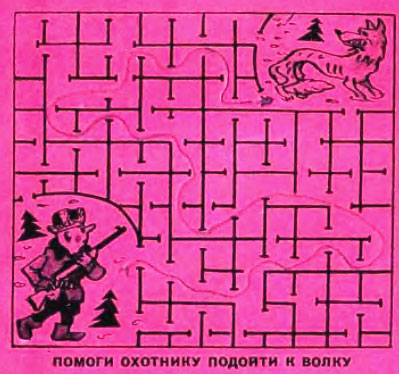 Помоги охотнику пройти к волку.