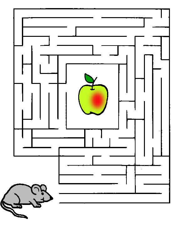 Помоги мышке добраться до яблочка.