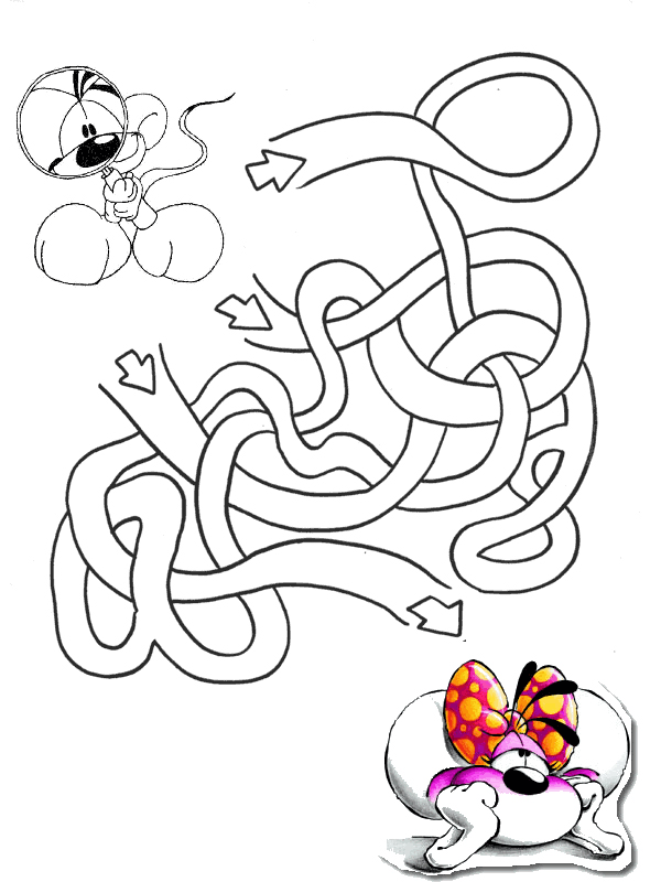 Диддлина скучает по Диддлу и не понимает, куда он пропал. А он просто не может пройти через лабиринт! Помоги ему!