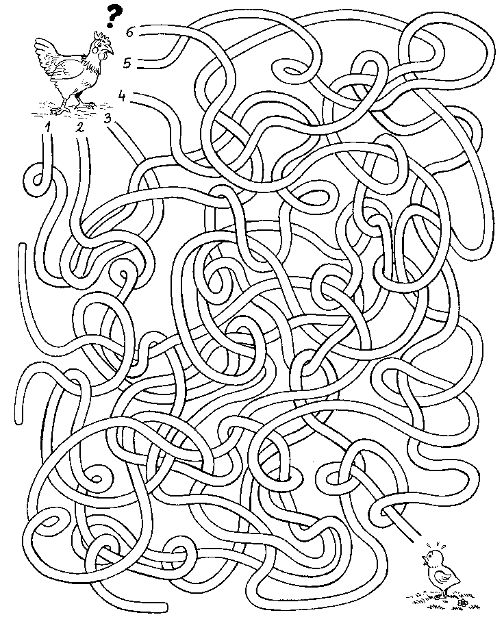 Которая из шести дорог приведет курицу к ее цыпленку?