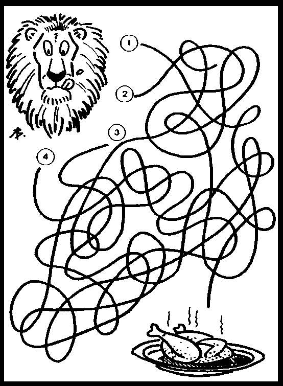 Лев проголодался. Помоги ему выбрать правильный путь до тарелки с едой.