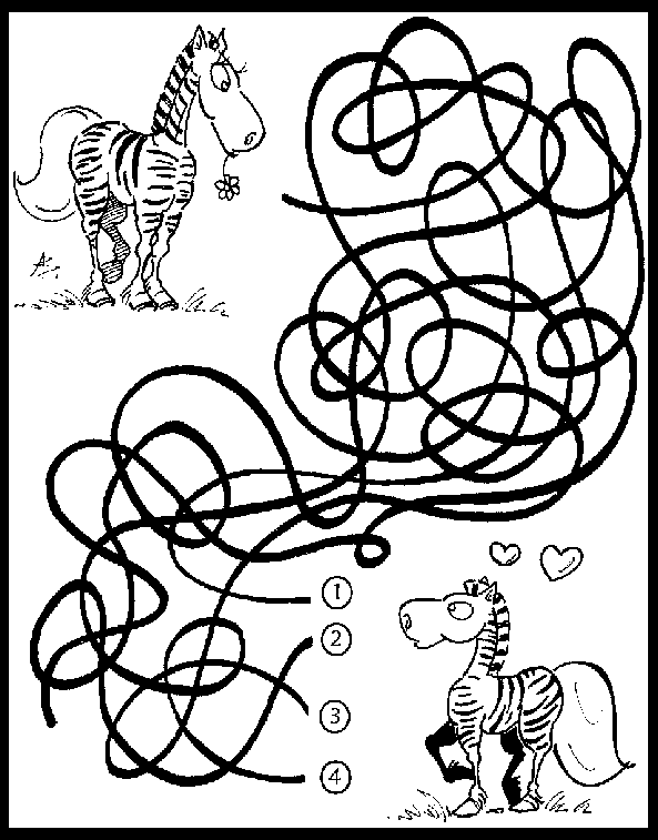 Зебра не знает, какая из четырех тропинок приведет к подруге. А ты можешь узнать?