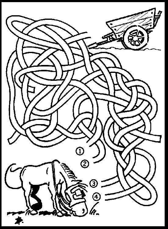 По какой из четырёх дорог лошадка дойдет до повозки?