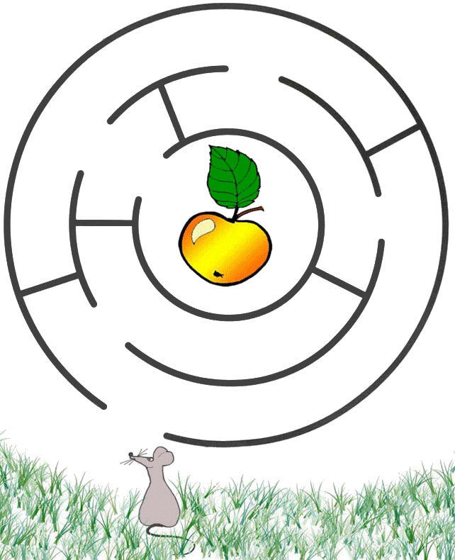 Помоги мышке дойти до яблока.