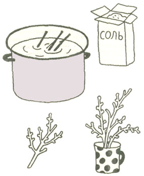 Скоро Новый год и пора подумать о том, как украсить квартиру к этому празднику. Гуляя с малышом, наберите букет из небольших веточек. Пускай ребенок сам выбирает наиболее красивые и причудливой формы. Дома возьмите просторный сосуд, в который свободно поместятся ветки- Приготовьте соляной раствор. Дайте малышу самому насыпать соль. Ее должно быть столько, чтобы она перестала растворяться. Залейте веточки раствором. Желательно, чтобы они не соприкасались друг с другом, Если им в сосуде недостаточно просторно, "солите" их по очереди.