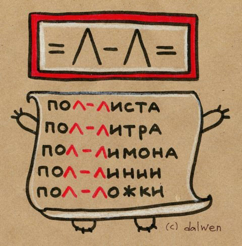 ПОЛ + первая буква в корне - Л = пишем через дефис