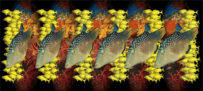 Представленные в этой коллекции изображения - вид стереограмм, то есть картинок, в которых скрыты объёмные изображения. Применяя технику для просмотра стереограмм, вы обнаружите те же объекты, из которых состоит узор стереограммы, но в объемном виде. То есть это достаточно простой вид стереограмм, которые сами содержат подсказку.
