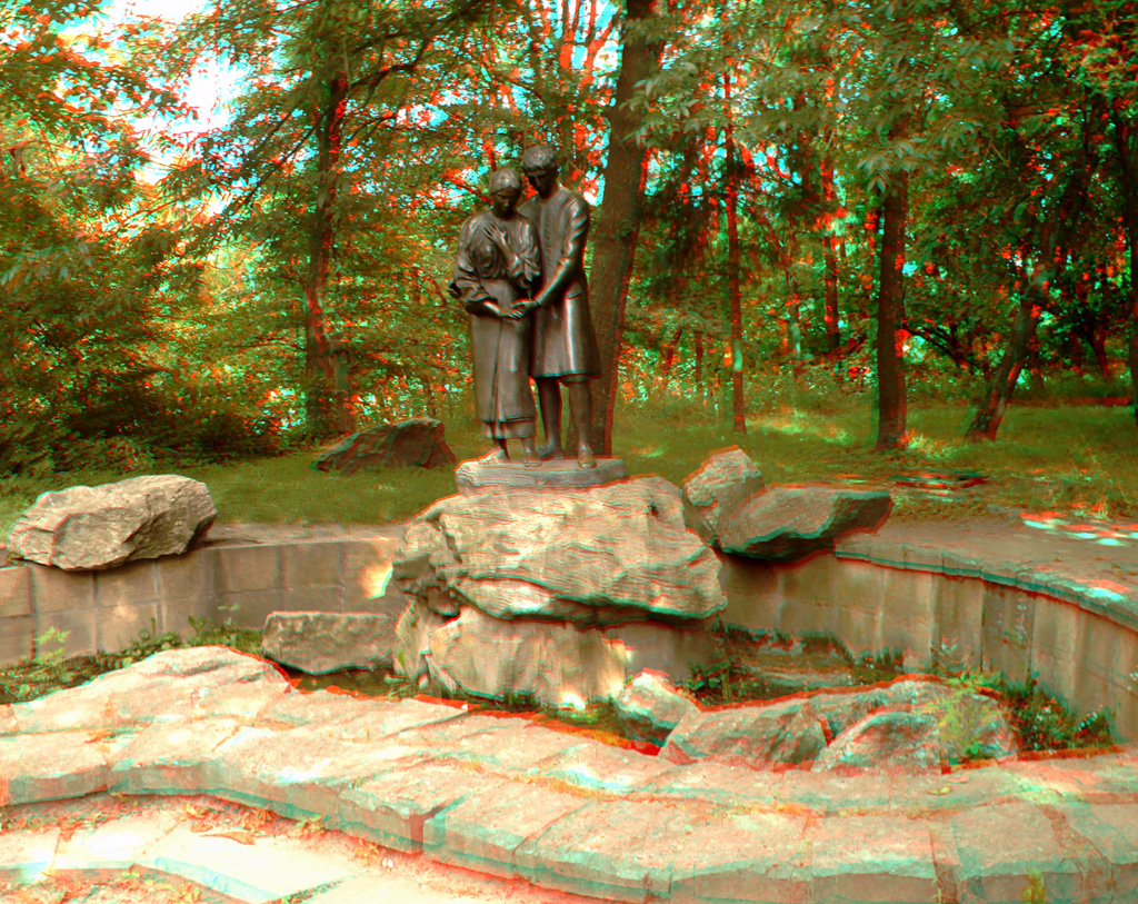 Анаглифические изображения — это картинки со смещенными слоями цветов — синего и красного. Смотреть на них невооруженным глазом интересно не больше, чем разглядывать старый ламповый телевизор, где картинка расслаивается на цвета и каждый объект имеет что-то вроде ауры. Чтобы увидеть изображение рельефным, объёмным, используются специальные очки, одно стекло которых красное, а другое синее:
